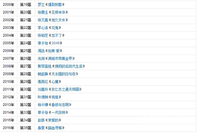 章子怡两次封后,周迅、巩俐、斯琴高娃、刘嘉玲、赵薇、春夏各捧得一次影后桂冠