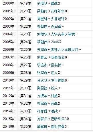 中国的三大电影节之一(其他两个是金马奖、金鸡奖),颁奖礼将于4月9日在香港文化中心举行