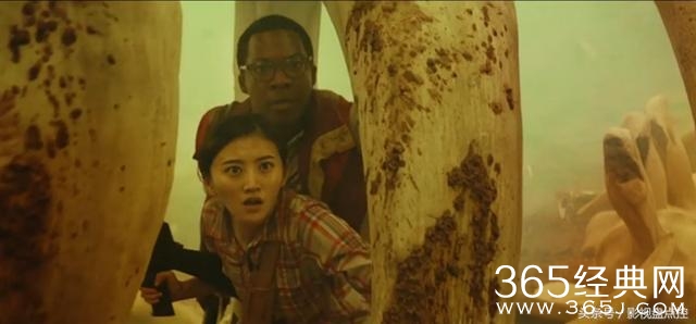 在影片的高潮段落,众人面对怪物要逃命时,景甜和布鲁克斯恰好驾船而来,她提醒岸上的人:“快点跑!”