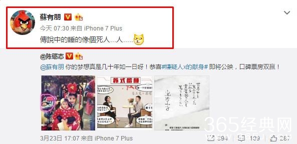 苏有朋躺在赵薇的斜后方,身上仍穿黄色戏服,外面套上黑色短版羽绒外套,拉起帽子、双手环抱胸前直接倒头就睡,丝毫没有注意到有人正在拍照,事隔19年,终于看到当时的自己,个性幽默的他忍不住转发照片自嘲:「传说中的睡得像个死人…人…」,笑翻所有网友。