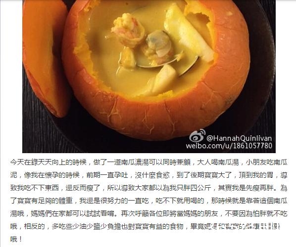 右为月子中心,左为昆凌在吃饭。南瓜盅她在微博中也提到过。