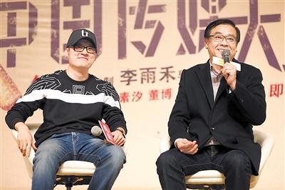 导演李雨禾(左)感谢尔冬升的帮助