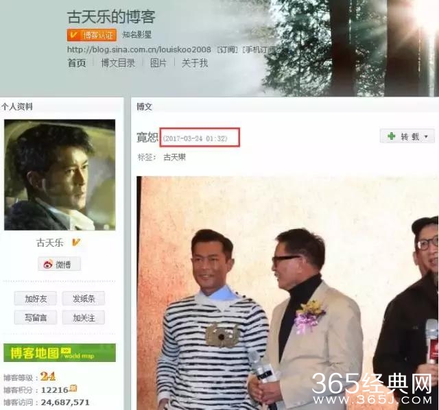 至今还在更新。从2008 年8月起,古天乐开始写博客。他每天都会发一些心情文字,再拍一些图片。不管自己是在飞机上、片场还是休假,博客没有一天间断过。