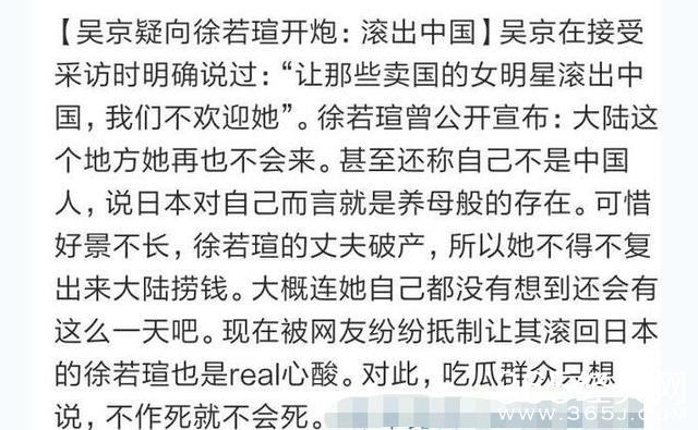 此前,吴京还呛声过一位明星,她在国外节目的时,说了如上的言词,然后吴京发了条微博。