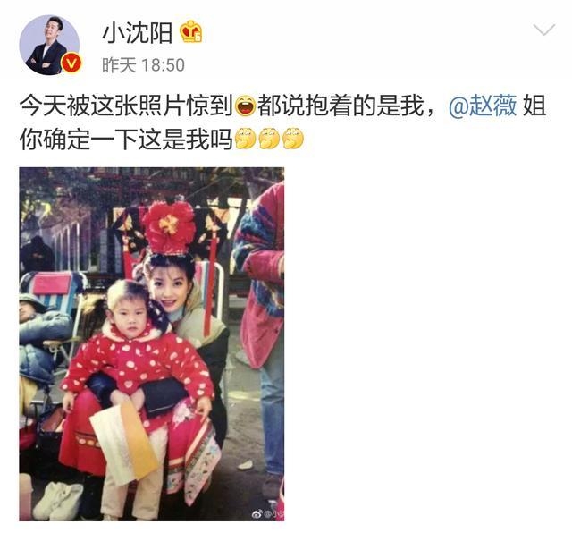 近日小沈阳在微博上晒出了一张照片,附文:今天被这张照片惊到,都说抱着的是我,@赵薇姐你确定一下这是我吗?