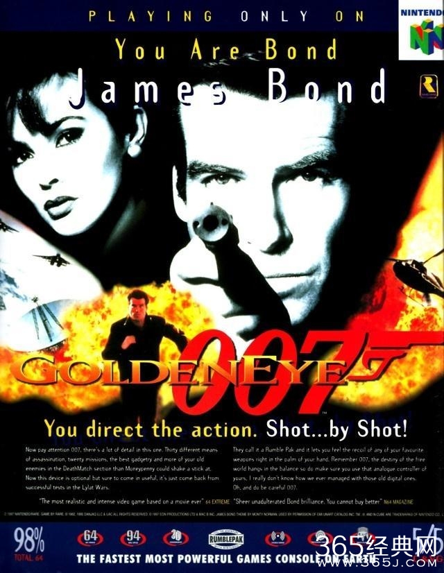 如果以“肖像授权” “明星参与游戏制作(配音)”为标准,那么史上第一部由大牌演员主演的游戏,直到1997年才出现,那就是N64上的《007:黄金眼》。