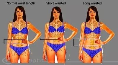 腰的长度可以分为三种类型,一种是标准型,一种是短腰,一种是长腰。判断方法是将叉在腰部最细的位置,如果腰的长度刚好和四指相同,则是标准长度,如果小于四指就是短腰,大于四指就是长腰。