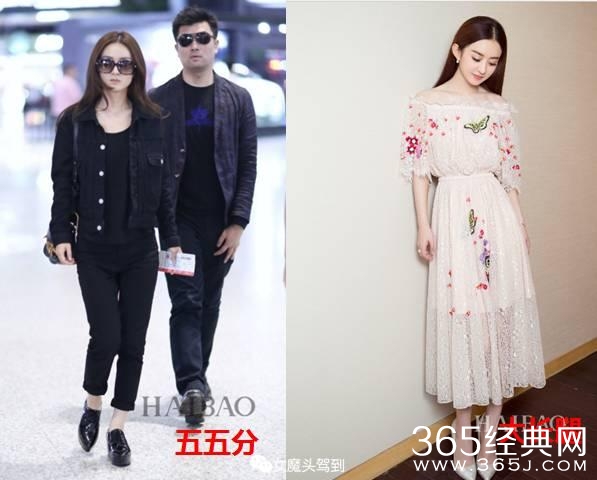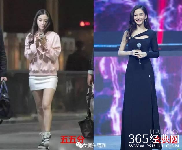 Angelababy是模特出身,我们一直以为她的比例很好,其实她也是腰长腿短的类型,她一直坚持高腰和高跟的搭配,所以给了我们比例很好的错觉。