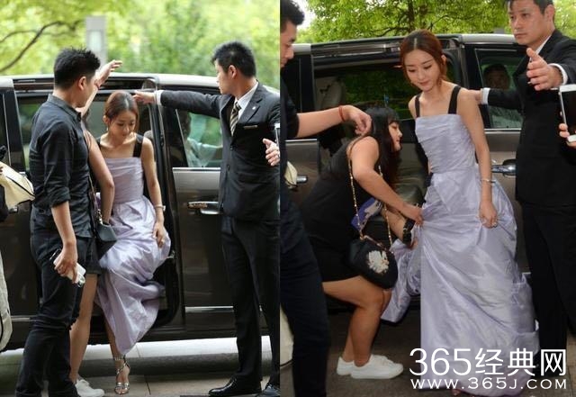 天仙妹妹刘亦菲这下车的地方多少看着有些冷清啊,一席抹胸礼服的造型虽然美却也给下车造成了一定的难度啊!不过刘亦菲处理的也还不错,用手挡住胸口不紧不慢倒也不失优雅!