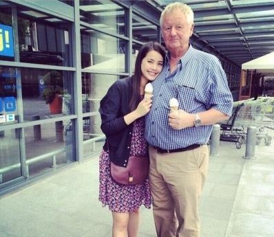 chompoo(《明媒正娶的妻子》女主)与她的妈妈及英国爸爸(已过世)