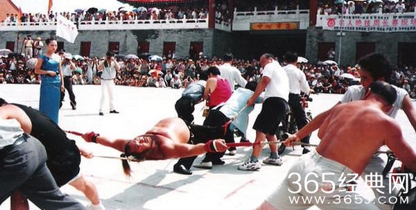 这个是他表现的时候,这么多人一起拉他一个人,都被他给打败了,这是有多么强大的力气啊!随便三五个壮汉他压根就不放在眼里,但是他的演技也是相当的好!
