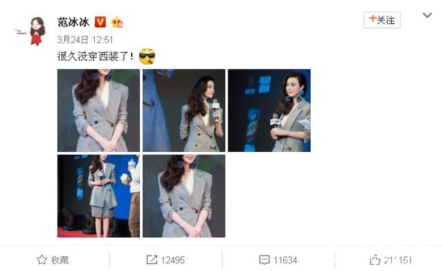 范冰冰跟了李晨后,活得很女人味,所以,好久都没穿西装了呢!