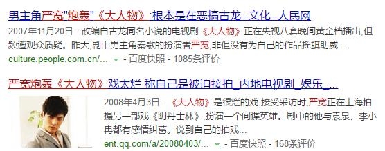 近日,正在央视热播的古龙大戏《大人物》的主演之一严宽,在博客上发表意见,直指《大人物》是自己的噩梦:“事实上我很不愿意承认那是我的作品……如果大家坚持要看,那就把它当笑话!”