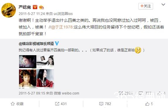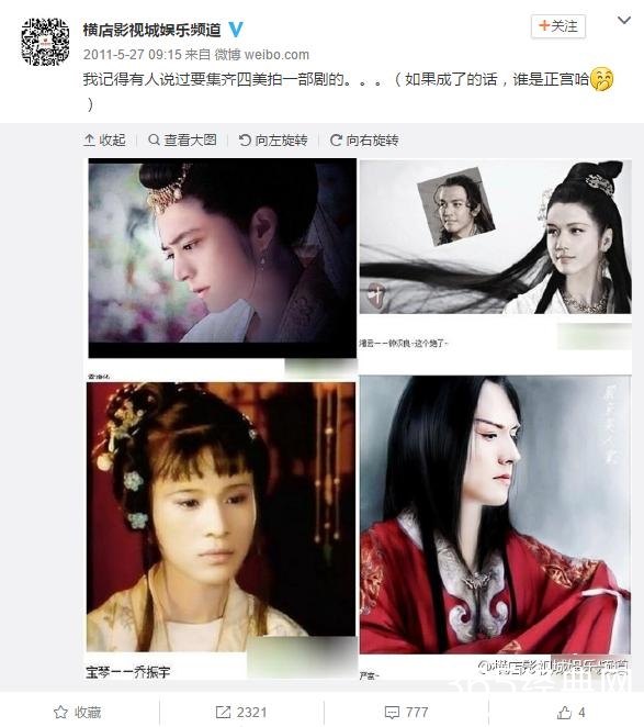 横店影视城的官方微博曾经发表动态:“我记得有人说过要集齐四美拍一部剧的。。。(如果成了的话,谁是正宫哈)”