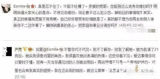 然后严屹宽为老婆怼粉丝...不过这个事仁者见仁智者见智吧,只能说他真的很爱老婆,没啥不能理解的。