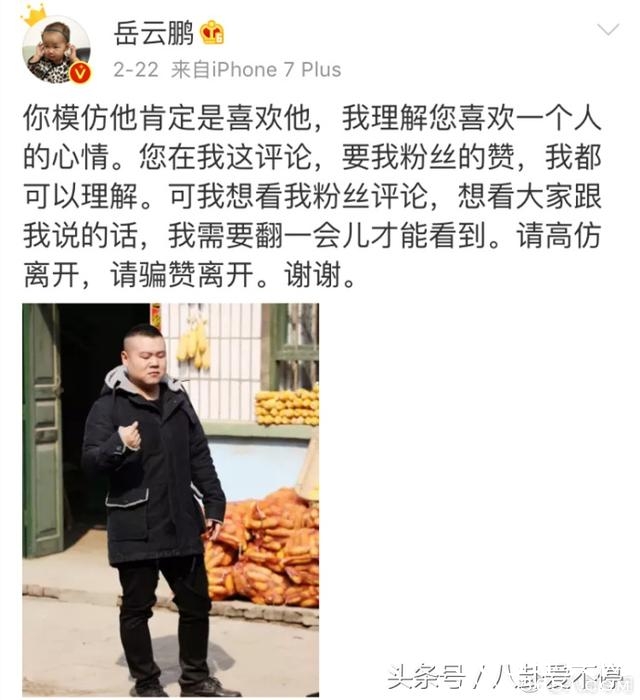 对于这种现象,小岳岳曾在微博公开指责,希望高仿号不要骗赞,请离开。