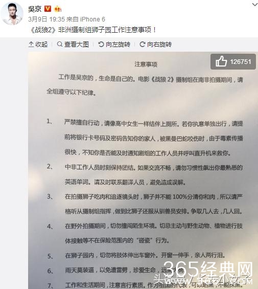 前段时间吴京在微博发布了一张战狼二剧组的告示,用词非常的时尚搞笑,用很逗逼的语言告诫剧组的人员要安全小心。