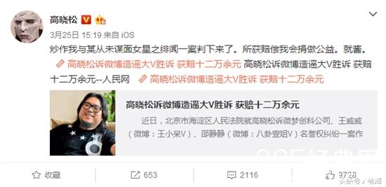 昨天,结果出来了,判被告人实名制发文道歉10天,并处罚金123568元。包括对高晓松的精神损害抚慰金和律师诉讼费等项,而高晓松老师还是蛮大气的,要的不是钱而是名声,这从他将赔偿款全部捐给慈善一事就能知晓,在这里先赞一下高晓松的举动。至此,又多了一个明星对自己的名誉维护权的胜诉案例,也给以后各微博大V和娱乐评论人敲了个警钟----不要信口雌黄胡编乱造,有些事情是不可以随便对待的。这可能正应了之前老海说的娱乐有风险,八卦须谨慎的话吧。作为一个娱乐评论人的老海,随着在这行的时间越来越长,对于圈内的事了解的越多,往往胆子也就越小,不过好在一直本着实事求是的原则,不会编造一些事来讲,只会就事论事。