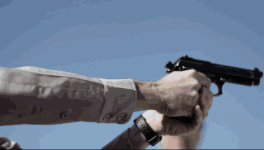 这时候警长为了让同事相信这不是现实,他们只是在「电影」里面,让警员开枪打他。