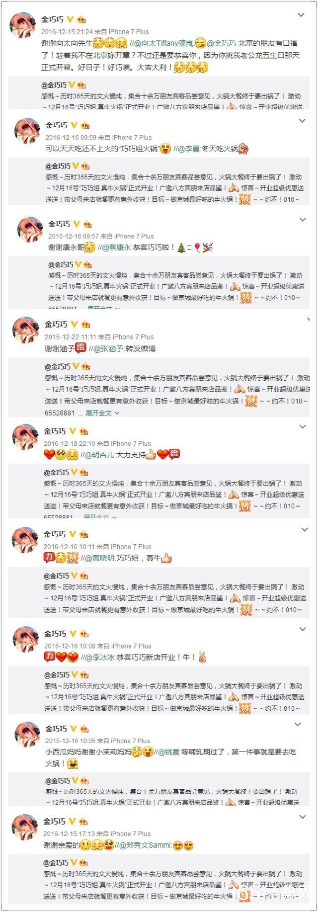 2016年金巧巧开了火锅店,更是各路明星大佬都来捧场。