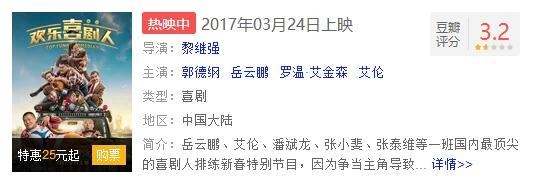 讲真,从电影角度看,《欢乐喜剧人》是烂片新代表。豆瓣的评分3.2.