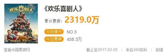 第一天票房突破1700万,今天已经2300万了!郭德纲和岳云鹏还是有号召力的,当然也许是憨豆的号召力。