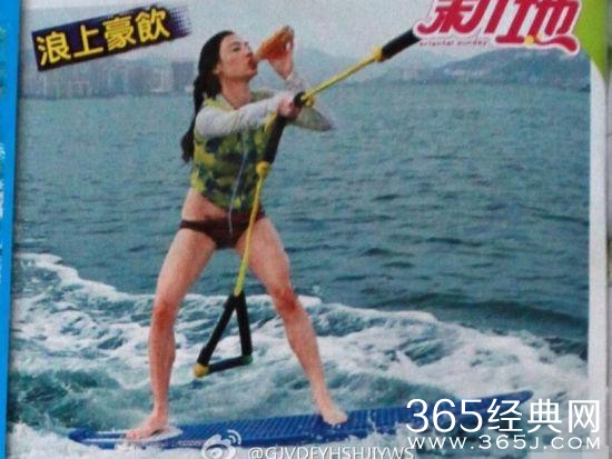 张柏芝一向很爱喝酒,连冲个浪都要喝一杯。