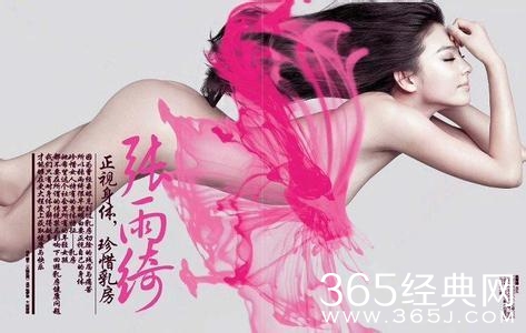 相对于大家比较保守的拍摄,最后一位女星张雨绮的粉红丝带更像是走错了摄影棚。