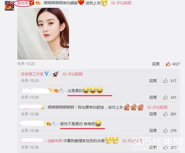 有意思的是,为了感谢赵丽颖的卖力宣传,苏有朋还特地跑到赵丽颖的微博下面高调“表白”,一度被怀疑是高仿