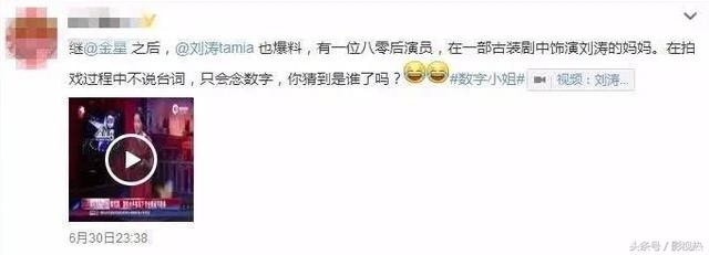 继金星在节目中爆料某女演员演戏只会说数字后,刘涛在某采访中爆料有一位80后演员,在与刘涛对戏时不念台词,只会说“1234567”。