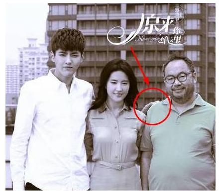 和刘亦菲拍摄电影时的合影,手指也是搭在导演的肩膀上。