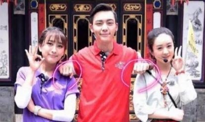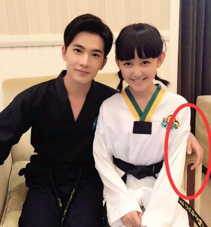 同样的另外一位杨洋合影时也是很注意手指的位置,避免粗碰到女生的敏感位置。