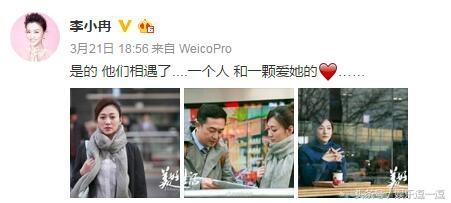 其实是李小冉的新电视剧《美好生活》的剧照,配文字:“是的,他们相遇了……一个人和一颗爱她的心。”