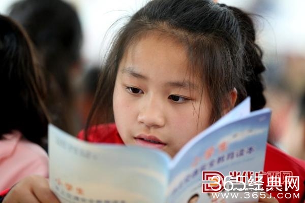 在广西柳州市融安县浮石镇中心小学教室,一名学生在看《小学生水上交通安全教育读本》。 通讯员 谭凯兴 摄