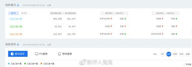 可见目前的网络关注度大头基本还在电视剧版身上,并未明显向电影版转换。