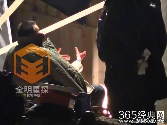 王凯再次回到休息区“候场”,满手“鲜血”的他坐着“小太阳”对面取暖,仍不忘拿出烟来“过把瘾”,这烟瘾还真不是一般大啊?!但由于王凯的手上抹满了“血浆”行动不便,于是王凯叫化妆师帮忙拿来烟灰缸,机械的转身把烟头扔了进去。然后双手放在“小太阳”前面暖手。这大冷天满手液体,也是被冻僵了吧...