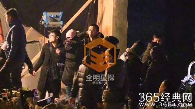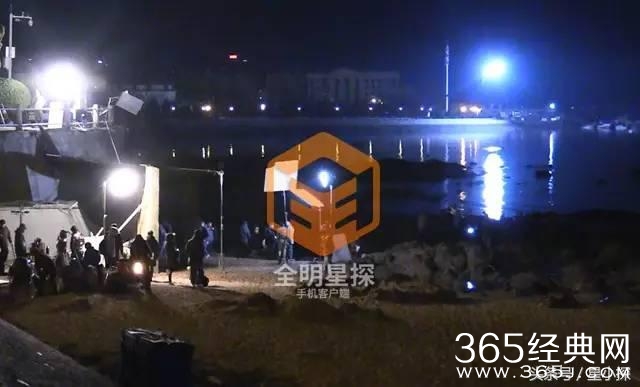 拍摄准备工作完毕的王凯坐在休息区休息,面前架着“小太阳”以抵御海边夜晚的寒冷。