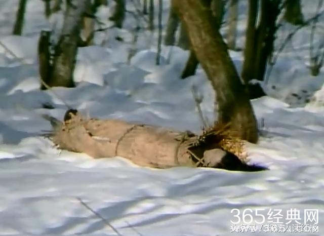 可能不少人在看这出席的时候,会以为里面卷的不是邓婕,或是替身,或者制的蜡象。谁会愿意被卷在席子里脚朝前头朝后被拉着,而且还是在雪地里。