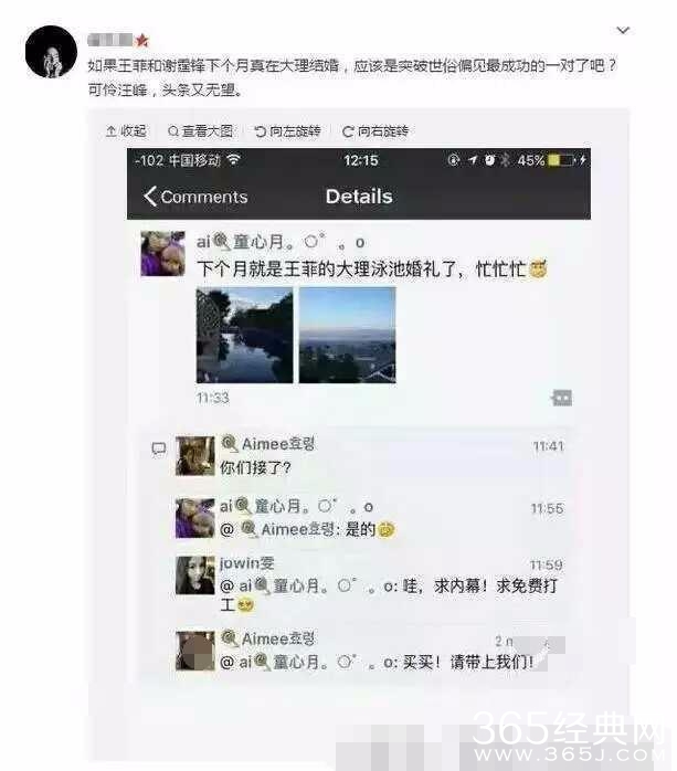 这两天又有消息传出天后王菲和谢霆锋要在大理办婚礼了