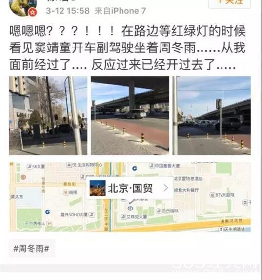 还有网友看到窦靖童开着车载着周冬雨,看画面描述相当酷