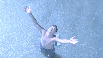 当安迪通过下水管道逃出肖申克监狱之后,在大雨中张开双臂呼唤那句“自由”的场景,想必所有影迷都不会忘记。