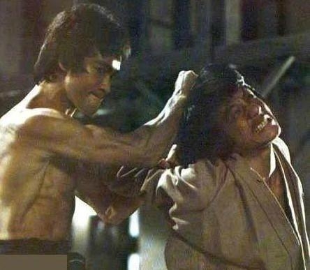 有一次,成龙到国外宣传影片时,一名彪形大汉想试其真功夫,冷不防从后面用粗壮的胳膊箍紧成龙的脖子;成龙不慌不忙地轻挪身子,三拳两脚就把对手惯倒在地上,大汉自知不是成龙的对手在一片赞叹哄笑声中,狼狈而逃,从这可见成龙的高超武功。