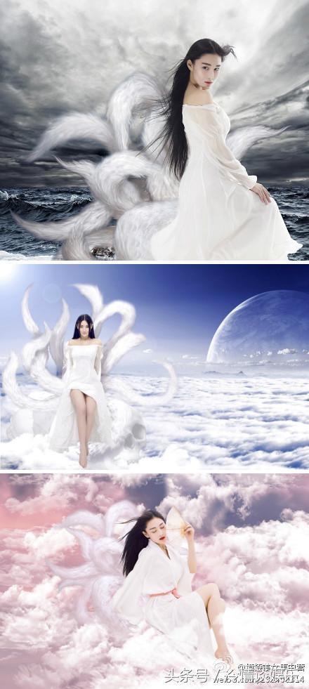 张馨予变身九尾狐,一袭白色拖尾裙,飘逸长发与九条狐尾交织辉映,娇艳似火,唯美动人,颇有仙侠轻灵之气。