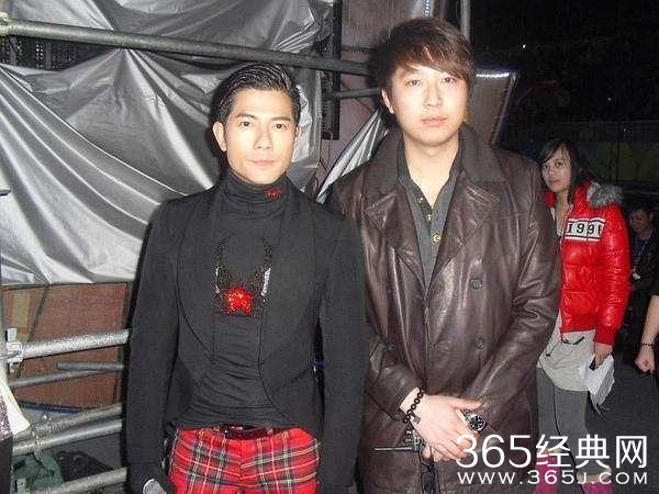 一代舞王郭富城遇上合影哥比较淡定,但是较低的身高让天王有些尴尬,天王倒成了陪衬。