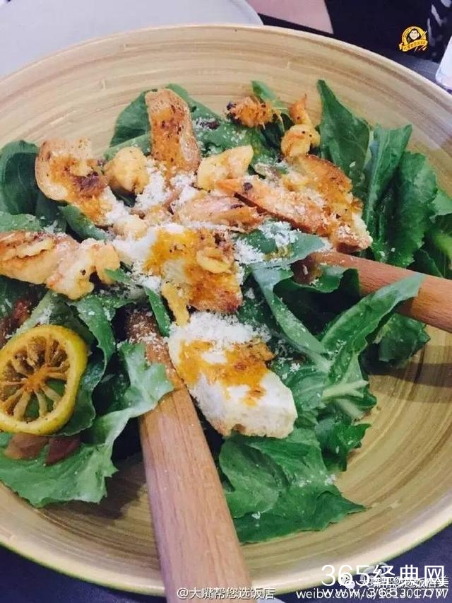 凯撒沙拉好大一碗,酱汁恰到好处,