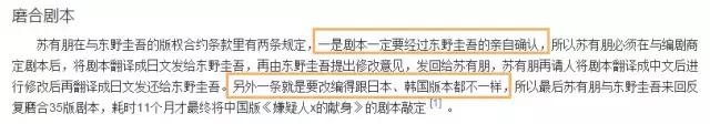 所以,刚听说苏有朋要翻拍这部作品的时候,十点君的每一个细胞都是拒绝的,直到我看到了这个,苏有朋和东野圭吾的版权合约里明确规定: