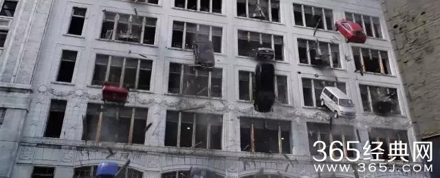几十辆车接连冲破窗户,坠楼引爆。