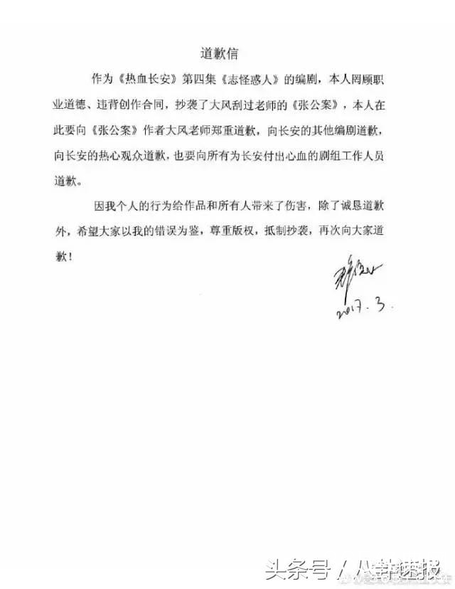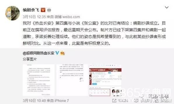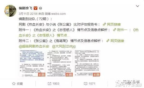 编剧余飞最后给出抄袭成立结论,官方被打脸,发表道歉声明,余飞随后附上评估报告