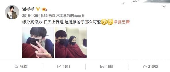 最有意思的一次是在机场休息室,谢彬彬遇到一个女孩在打游戏,就随口问了一句,没想到是娄艺潇。更巧的是,登机后,两人的座位也是在一起。