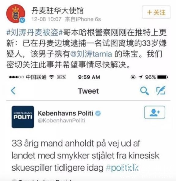 汪涵知道这件事后,立即亲自致电丹麦驻华大使馆,隔天早晨,偷窃刘涛珠宝的男子就已落网,堪称神速。
